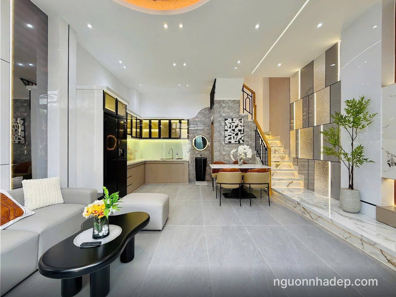 • Kết cấu: Trệt, 2lầu, sân thượng 3 phòng ngủ, 3wc trong đó có phòng Master siêu VIP. Phòng thờ, phòng giặt, sân thượng siêu siêu rộng.